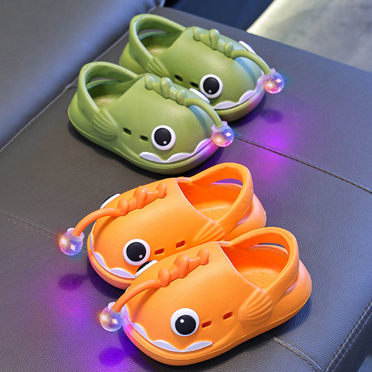 Children's sandals and slippers, summer boys with luminous lights, anti slip, and a sense of stepping on feces, big, medium, and small children with baotou, girls with beach holes, shoes